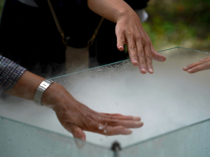 The stone walls of Kameyama Castle ruins have been dismantled and rebuilt countless times. They were ruined by disasters and restored by the hands of townspeople, in a cycle of disassembly and regeneration for over four centuries. Imagining that process, one finds carved stones buried in the ground, boulders hauled from the mountains, filler stones gathered from the castle town and back alleys. The walls themselves embody the collective traces of the town and its people.